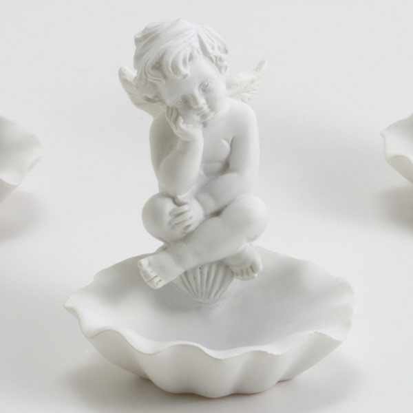 はずしたピアスのちょっと置きなどに。かわいいエンジェルが見守ってくれます。発表会や手作りウェディングのプチギフトにいかがですか?まとまった数のご注文は、個別にご相談ください。一体一体個包装でお届けします。サンプルはこちらをご覧ください。3体まとめて置いてもキュートですよ。 ※お届けするのは、ほおづえをついているエンジェル一体になります。 材質 樹脂製 サイズ 幅約5.3cmx奥行5.3cmx高さ約